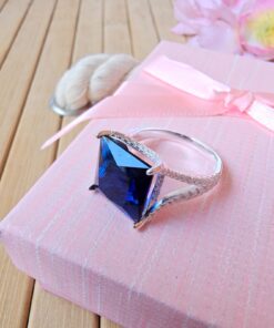 Anillo circonio cuadrado azul