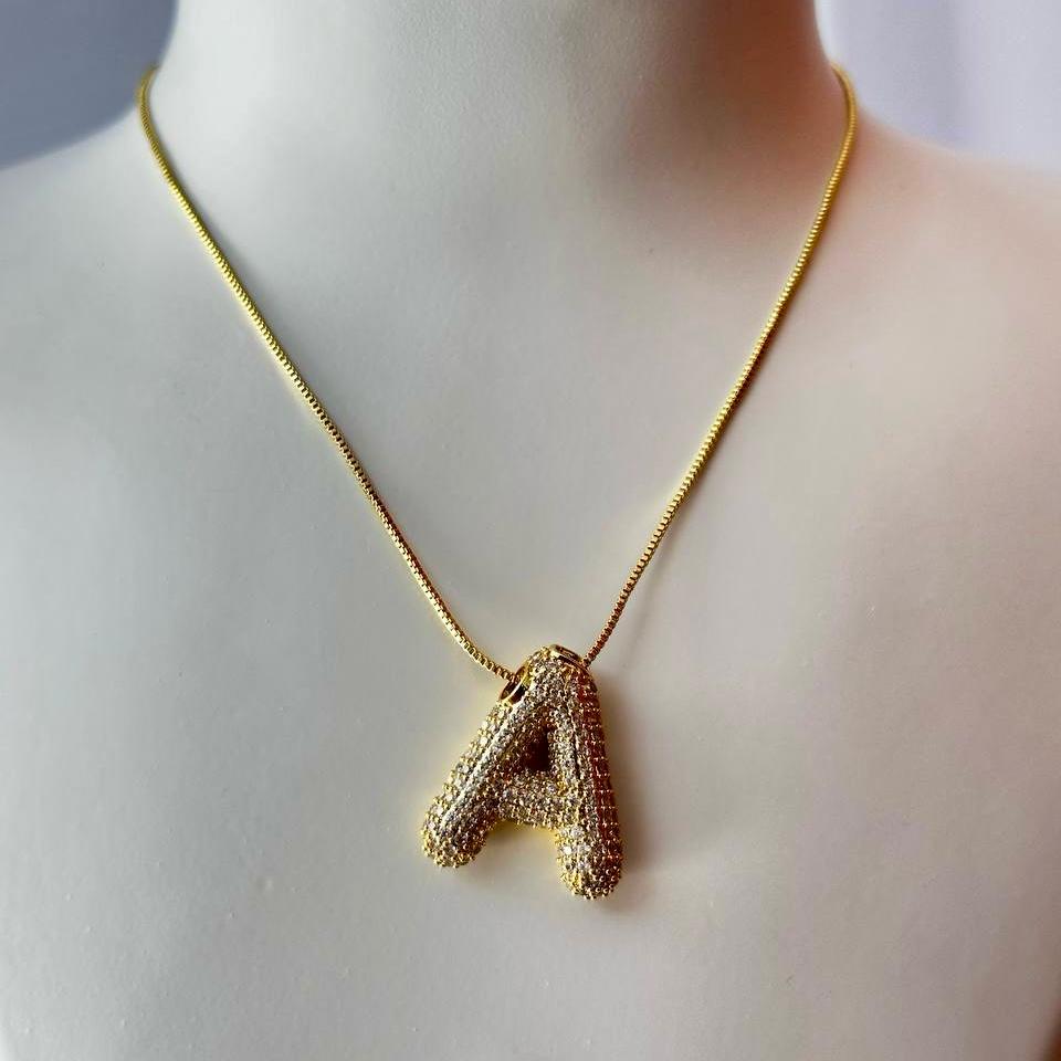 Collar Letra A con Piedra